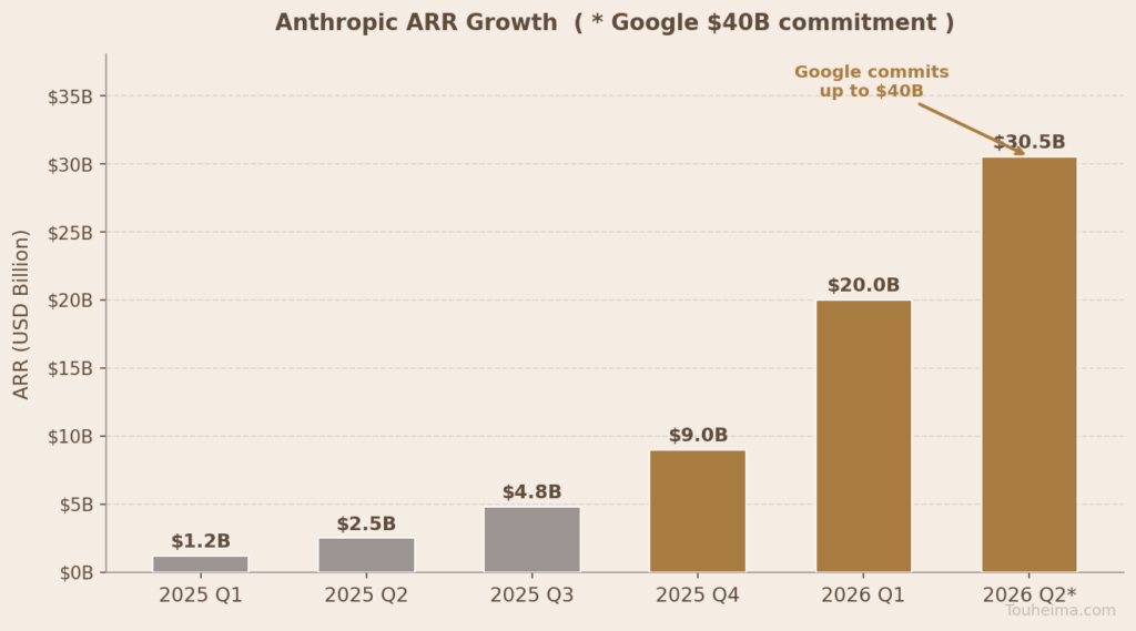 [图表:Anthropic年化营收增长轨迹(2025 Q1 — 2026 Q2)]